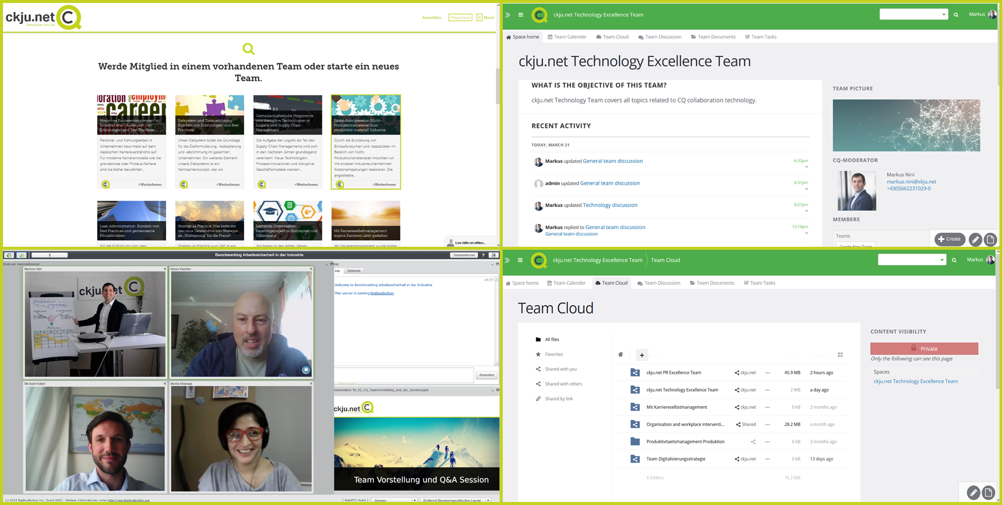 Unsere Plattform ckju.net eröffnet ein solches Umfeld für die flexible, ortsungebundene Co-Kreation von Wissen. Das Ganze ist mehr als die Summe seiner Teile. Dieses Grundprinzip bildet die Basis, um mit Vernetzung, Kollaboration und Teamarbeit die Wettbewerbsfähigkeit steigern.