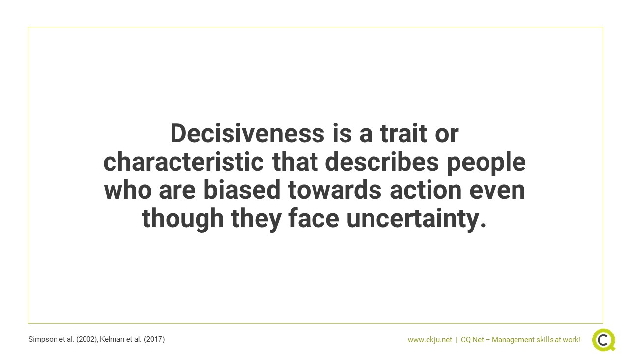 As a professional it is your daily business to make decisions. This applies to your professional life in the same way as to your private life. Moreover, with an increased focus on self-responsibility, most organizations expect from their employees to be decisive. Consequently, decisiveness is a key characteristic important for professionals in leadership positions and beyond. We have a look at the foundation of decisiveness, how it works and what you can do to benefit from it.