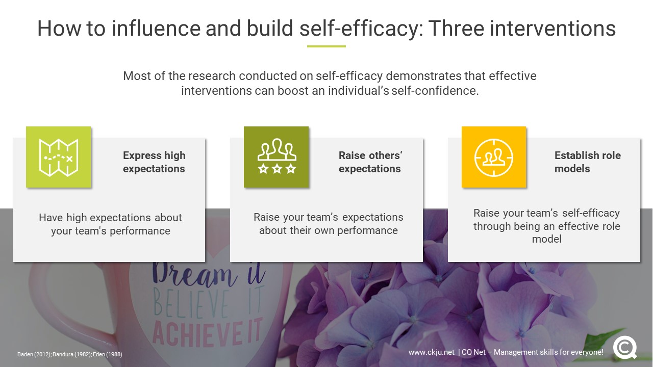 Most of the research conducted on self-efficacy demonstrates that effective interventions can boost an individual’s self-confidence.