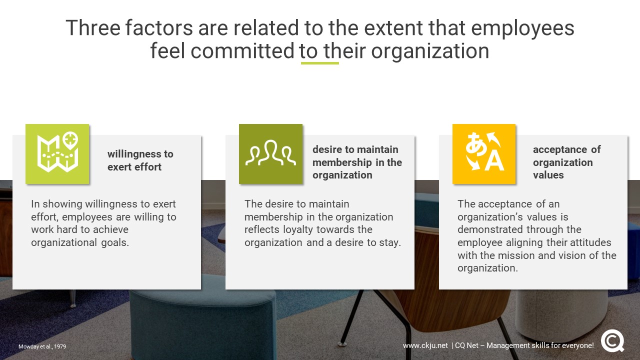 Most of the research on commitment has focused on commitment to the organization yet employees can vary into whom they show commitment; it can’t be assumed that commitment to organization also includes a commitment to one’s supervisor (Klein et al., 2012).